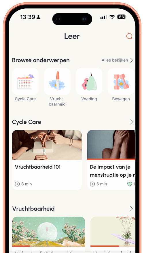 Volg je cyclus en ovulatie, chat met je arts, en krijg via de Flouria-app op elk moment toegang tot deskundige informatie – van hormonale gezondheid tot emotioneel welzijn.
